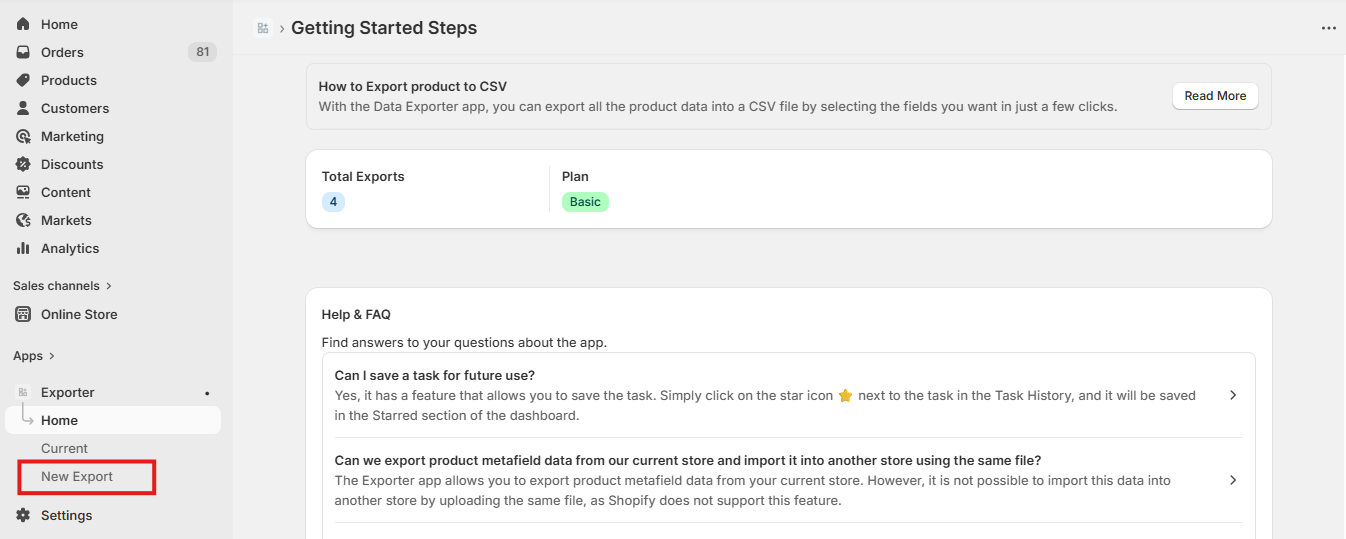 1. Go to the App dashboard > Click on the New Export sub menus.
