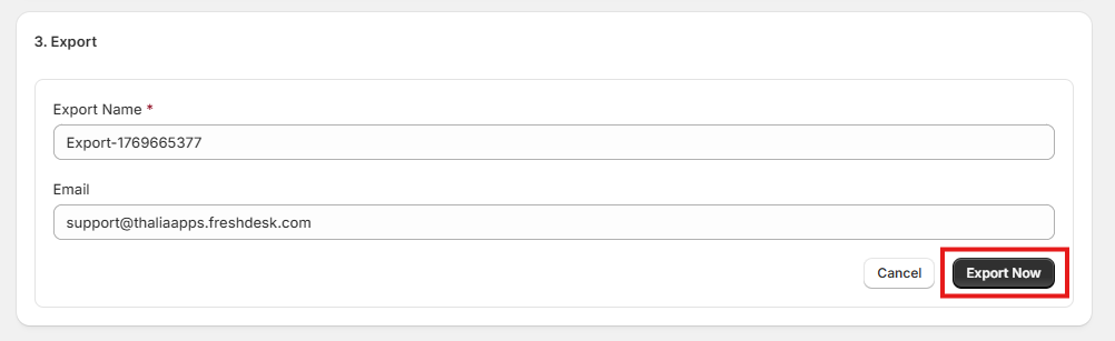 5. Finally, provide the export name and email and click the Export Now button. The app will then send you the CSV file to the email address you provided, wherein you can then download the file.