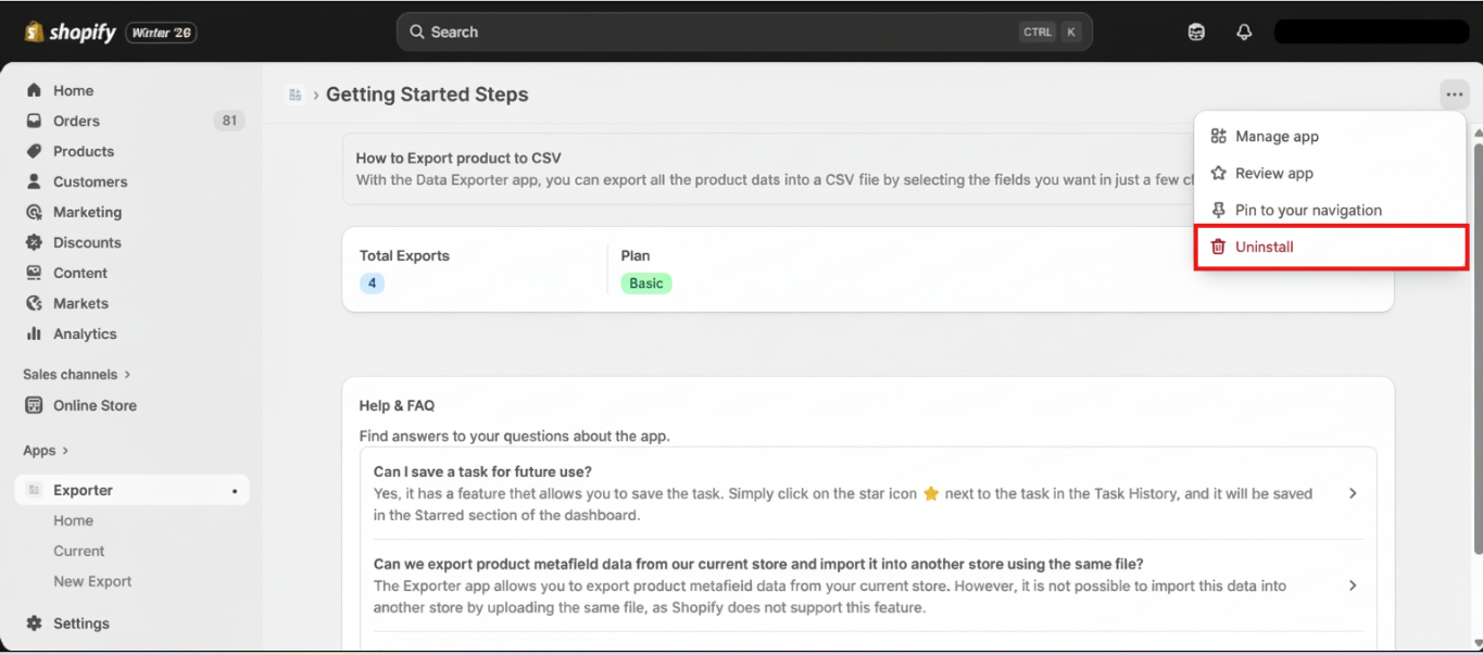 For detailed instructions, check out Shopify's guide on uninstalling apps.