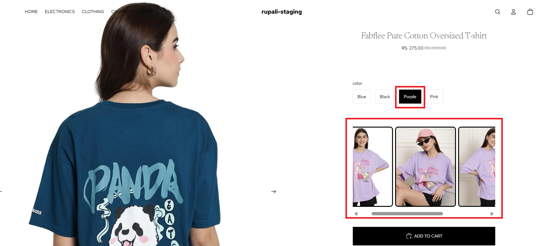 Imagine your customer clicks on “Red” for a t-shirt variant, and they instantly see the red t-shirt images and a video showcasing its fit – that’s the level of clarity and professionalism this feature brings to your product pages.