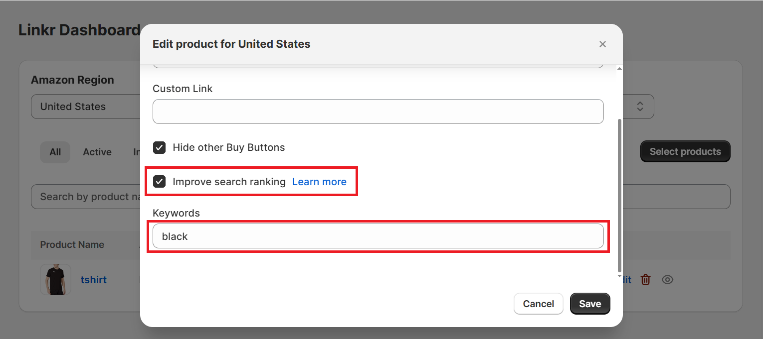 In the same pop-up, you can enable Improve Search Ranking and enter relevant keywords to help increase Amazon organic search visibility.