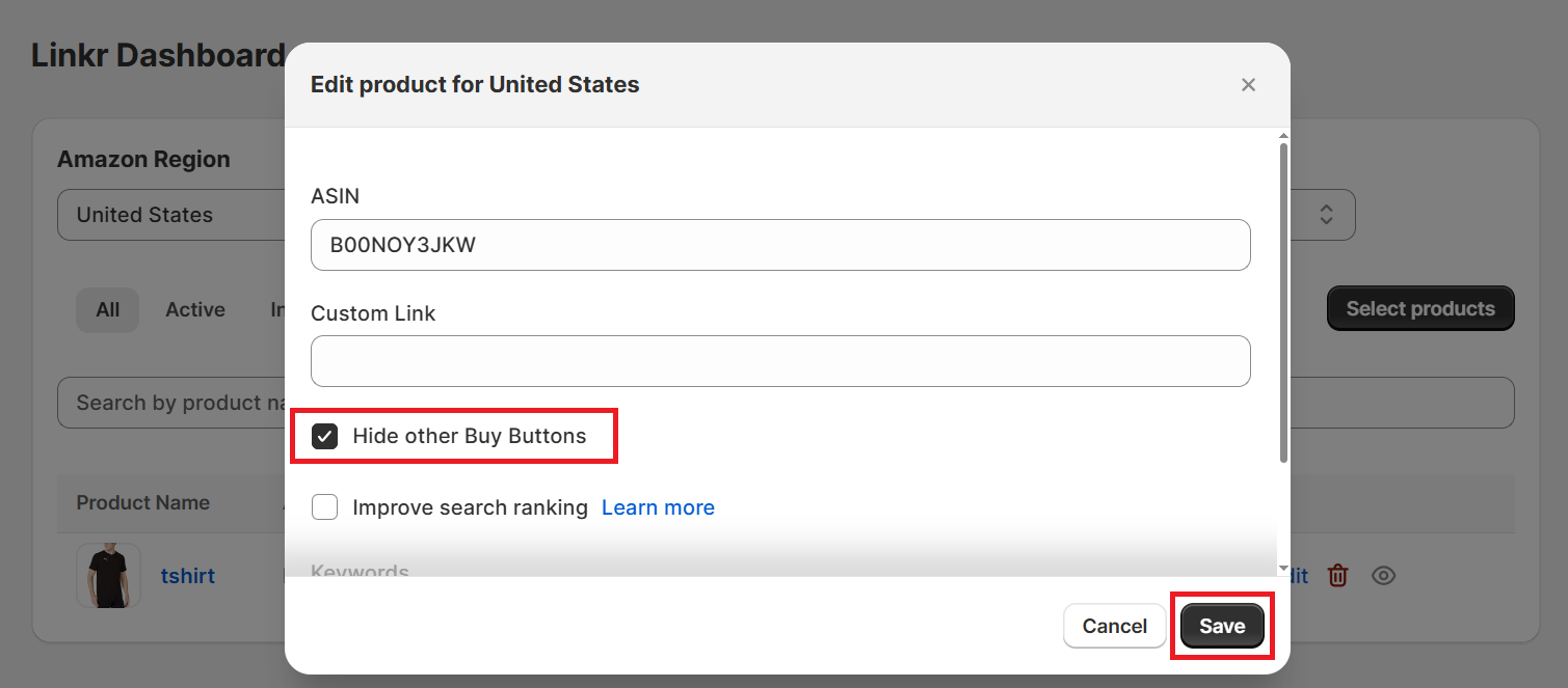 That’s it! The Shopify Add to Cart button will now be hidden, ensuring that only the Linkr Amazon Buy Now button is visible on the selected product.